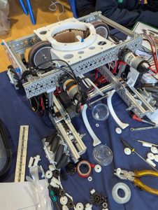 Throughout the day both teams worked tirelessly in the pit area between matches, making rapid modifications to their robots and refining their code. New mechanisms were added and adjustments made to improve performance, with each outing showing clear improvements in speed, reliability and scoring ability.
