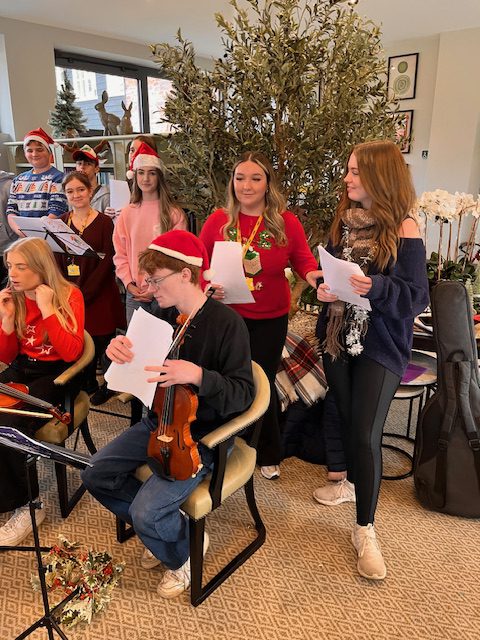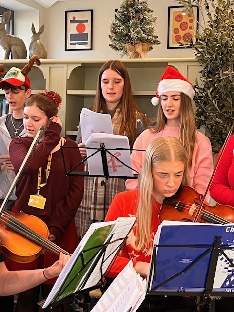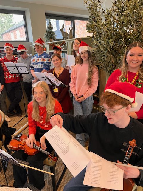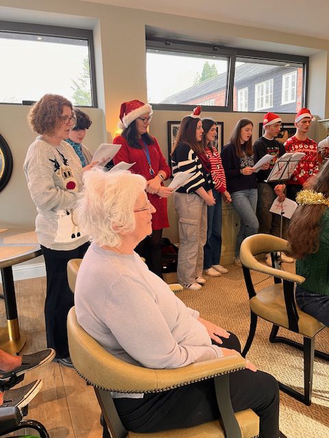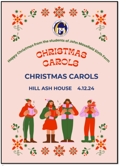 | On Wednesday the 4th of December, a cheery group of John Masefield’s Sixth Formers donned their Christmas jumpers brought some festive joy to the residents and staff at Hill Ash Care Home.
